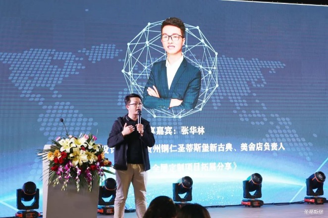 2021年3月16日晚5时许,在【圣蒂斯堡】营销中心四楼景观花园举办经销商分享交流会,开启整装定制新时代!随着暖场音乐播放,激动人心的时刻到了。首先,由Huatihui集团营销部总经理陈玉伟先生致开幕词,随后,来自全国各地的优秀经销商分享他们的成功之道。